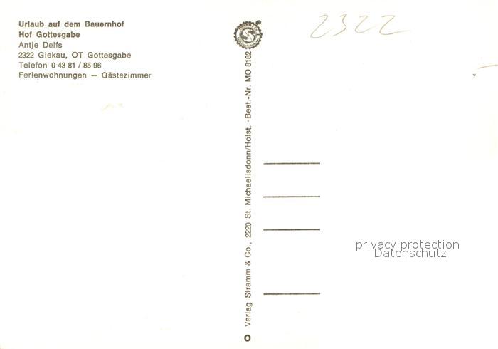 73641516 Gottesgabe Giekau Hof Gottesgabe Urlaub auf dem Bauernhof Ferienwohnungen postalisch nicht gelaufen Erhaltung siehe scans [FriedD77] KatCode: 11110001057021