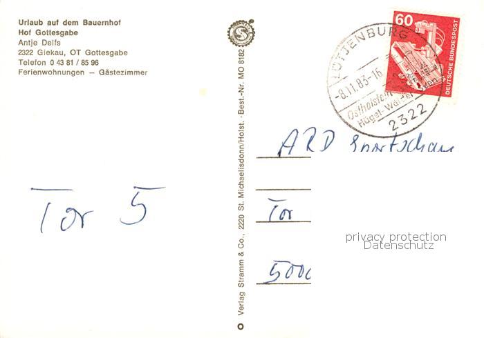 73865470 alte Postkarte Gottesgabe Giekau Urlaub auf dem Bauernhof Hof Gottesgabe Ferienwohnungen postalisch gelaufen Erhaltung siehe scans [FriedD77] KatCode: 11110001057021