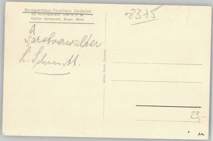 40221557 Gotteszell Gasthaus Forsthaus Oedwies ungelaufen ca. 1920 KatCode 11110009276123
