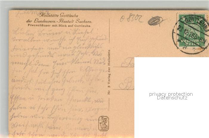 43350256 alte Postkarte Gottleuba-Berggiesshuebel Bad Heilstaette der LVA Sachsen Frauenhaeuser postalisch gelaufen Erhaltung siehe scans [WerneD78] KatCode: 11110014287015