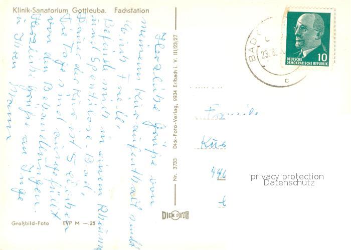 73686551 alte Postkarte Gottleuba-Berggiesshuebel Bad Klinik Sanatorium Fachstation postalisch gelaufen Erhaltung siehe scans [FriedD77] KatCode: 11110014287015