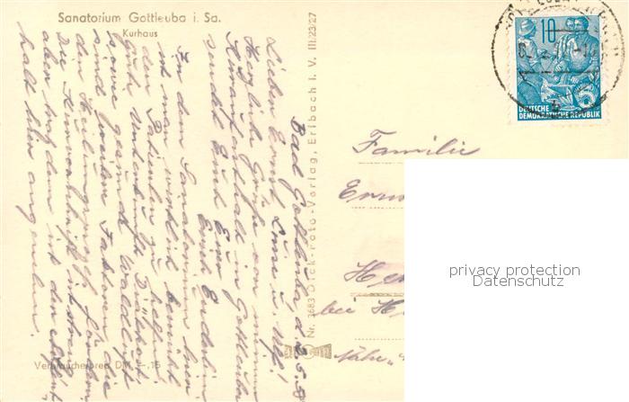 73750570 alte Postkarte Gottleuba-Berggiesshuebel Bad Kurhaus postalisch gelaufen Erhaltung siehe scans [WerneD78] KatCode: 11110014287015