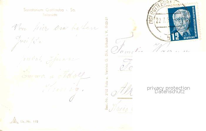 72647204 alte Postkarte Gottleuba-Berggiesshuebel Bad Sanatorium postalisch gelaufen Erhaltung siehe scans [NatalD47] KatCode: 11110014287015