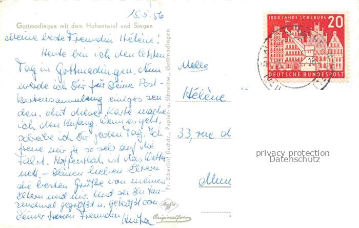 74037451 alte Postkarte Gottmadingen Fliegeraufnahme mit Hohentwiel und Singen postalisch gelaufen Erhaltung siehe scans [WerneD78] KatCode: 11110008335028