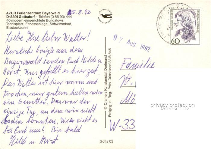 73634506 alte Postkarte Gottsdorf Niederbayern Azur Ferienzentrum Bayerwald Fliegeraufnahme postalisch gelaufen Erhaltung siehe scans [WerneD78] KatCode: 11110009275153