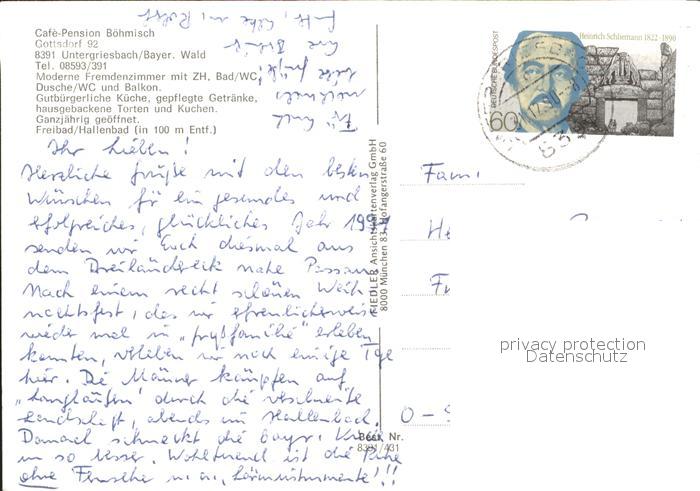 71950913 alte Postkarte Gottsdorf Niederbayern Cafe Pension Boehmisch postalisch gelaufen Erhaltung siehe scans KatCode: 11110009275153