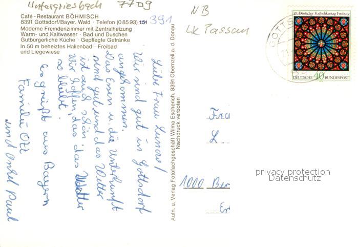 72929554 alte Postkarte Gottsdorf Niederbayern Freibad Cafe Restaurant Boehmisch postalisch gelaufen Erhaltung siehe scans [LiesaD40] KatCode: 11110009275153