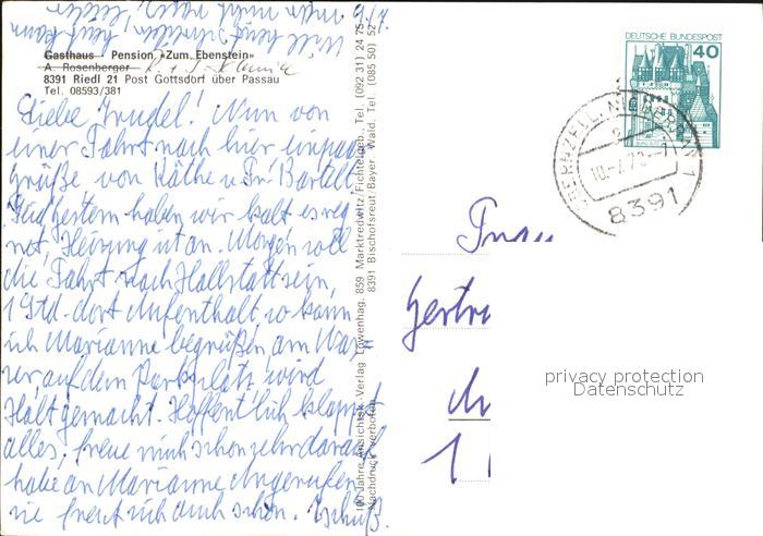 72577663 alte Postkarte Gottsdorf Niederbayern Gasthaus Pension Zum Ebenstein Panorama Donautal postalisch gelaufen Erhaltung siehe scans [FriedD77] KatCode: 11110009275153