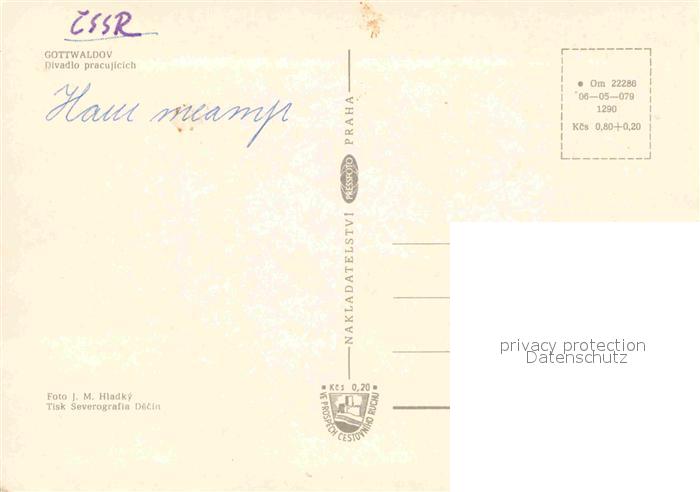Gottwaldov Tschechien Divadlo pracujicich Theater postalisch nicht gelaufen Erhaltung siehe scans [FriedD77]