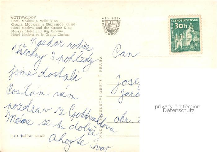 73740576 Gottwaldov Tschechien Hotel Moskva a Velke kino postalisch nicht gelaufen Erhaltung siehe scans [WerneD78] Wern Katcode 11520