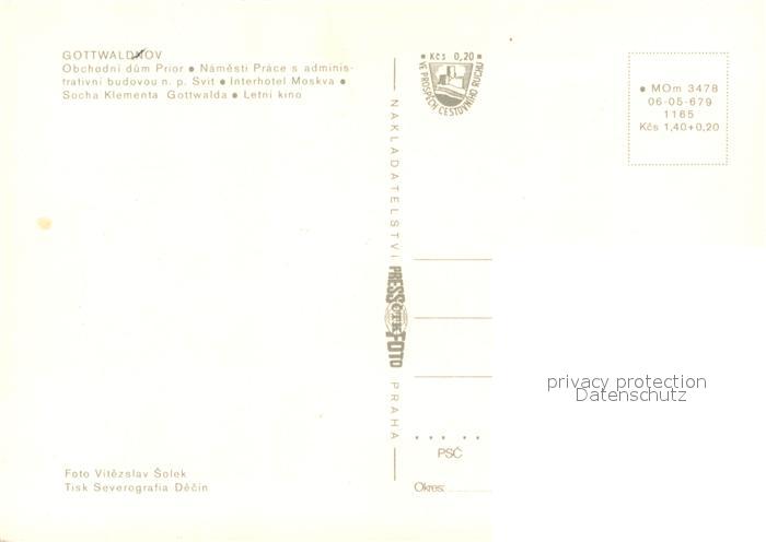Gottwaldov Tschechien Obchodni dum Prior NamestiPrace s administrativnibudovou np Svit Interhotel Moskva Socha Klementa Gottwalda Letni kino postalisch nicht gelaufen Erhaltung siehe scans [FriedD77]