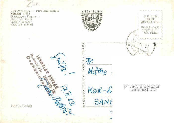 12779900 old postcard Gottwaldov Tschechien Platz der Arbeit postalisch gelaufen Erhaltung siehe scans [WerneD78] KatCode: 11520