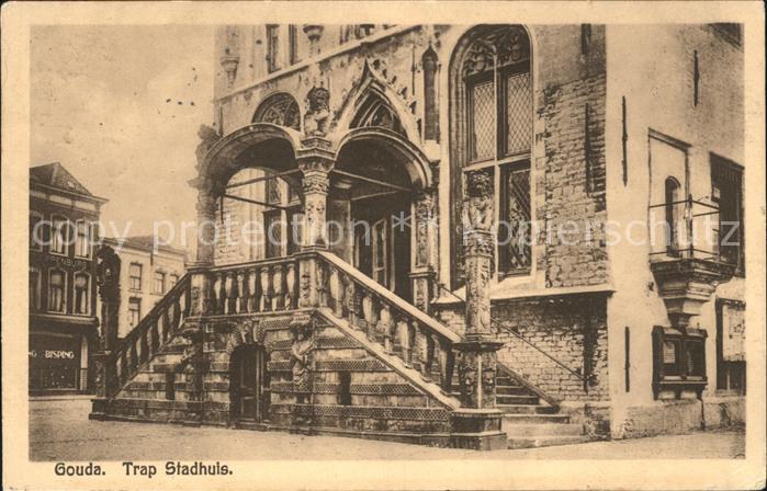 old postcard Gouda Trap Stadhuis postalisch gelaufen Erhaltung siehe scans