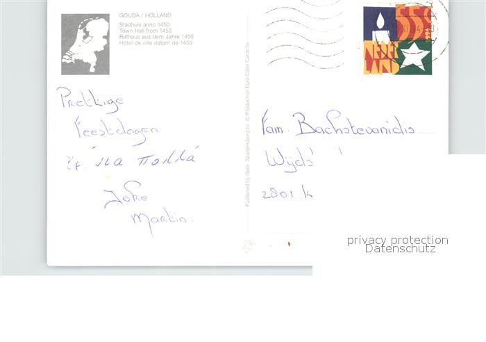 old postcard Gouda Zur Weihnachtszeit Stadhuis postalisch gelaufen Erhaltung siehe scans