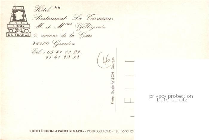 13222994 Gourdon 46 Lot Hotel Restaurant Le Terminus Pool postalisch nicht gelaufen Erhaltung siehe scans [LiesaD40] KatCode: 11170046346127