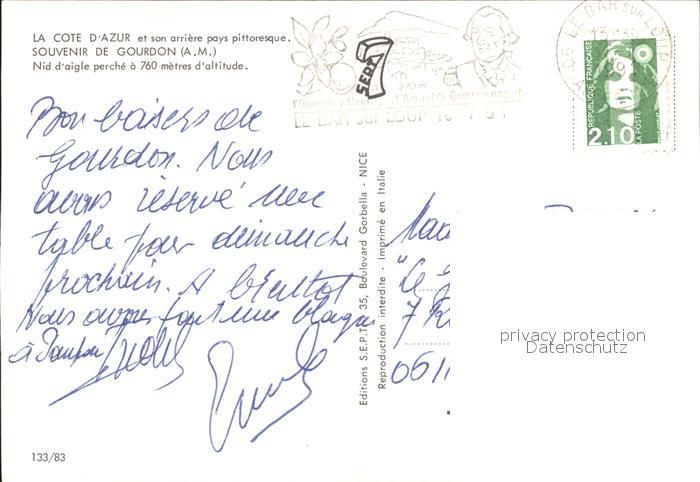 12231116 carte postale Gourdon Alpes-Maritimes et son arriere pays pittoresque Nid d aigle postalisch gelaufen Erhaltung siehe scans KatCode: 11170006106068