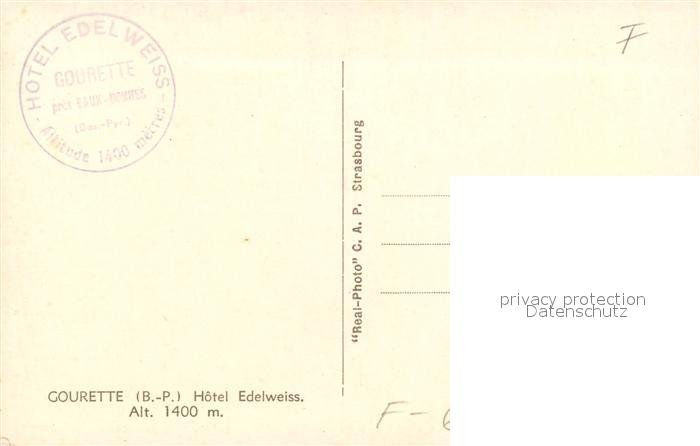 13075502 Gourette Hotel Edelweiss Pyrénées postalisch nicht gelaufen Erhaltung siehe scans [FriedD77] KatCode: 11170064264204