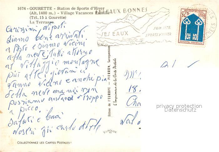13537568 carte postale Gourette Station de Sports d Hiver Village Vacances Famille Terrasse Pyrénées postalisch gelaufen Erhaltung siehe scans [FriedD77] KatCode: 11170064264204