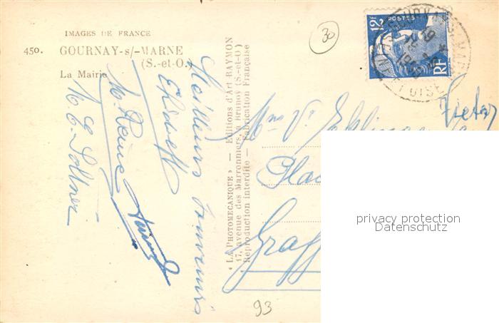 13491111 carte postale Gournay-sur-Marne La Mairie postalisch gelaufen Erhaltung siehe scans [FriedD77] KatCode: 11170093293033