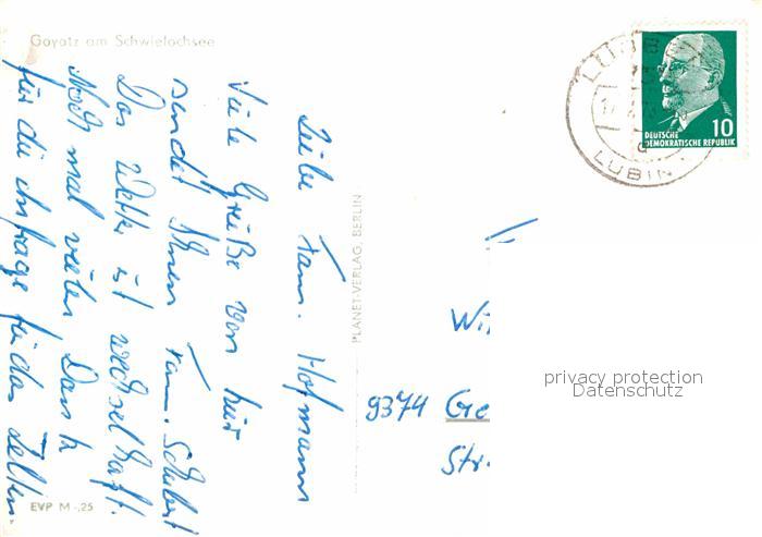 72731360 alte Postkarte Goyatz Badestelle am Schwielochsee postalisch gelaufen Erhaltung siehe scans [LiesaD40] KatCode: 11110012061450
