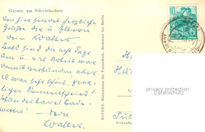 73044653 alte Postkarte Goyatz Partie am Schwielochsee postalisch gelaufen Erhaltung siehe scans [WerneD78] KatCode: 11110012061450