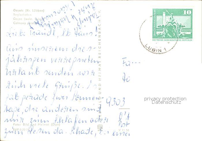 72477102 alte Postkarte Goyatz Seglerhafen postalisch gelaufen Erhaltung siehe scans KatCode: 11110012061450