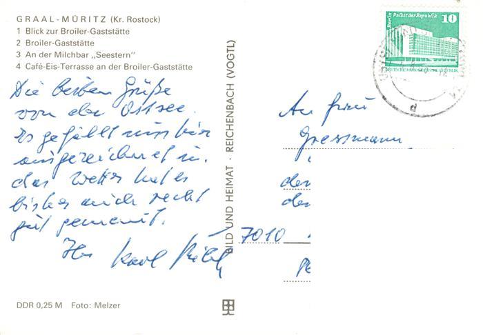 73900188 alte Postkarte Graal-Mueritz Ostseebad Broiler Gaststaette Milchbar Sestern Cafe Eis Terrasse postalisch gelaufen Erhaltung siehe scans [WerneD78] KatCode: 11110013051022