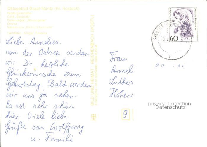 72322758 alte Postkarte Graal-Mueritz Ostseebad Broilergaststaette Cafe Seeblick Ferienobjekt Strandperle Strand Sanatorium Richard Assmann postalisch gelaufen Erhaltung siehe scans KatCode: 11110013051022