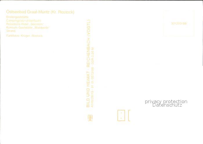 72418984 Graal-Mueritz Ostseebad Broilergaststaette Camping Uhlenflucht Hotel Seestern Konsum Gaststaette Waldperle Strand postalisch nicht gelaufen Erhaltung siehe scans KatCode: 11110013051022