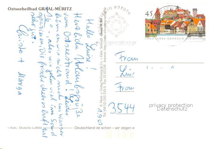 73167874 alte Postkarte Graal-Mueritz Ostseebad Fliegeraufnahme mit Strand postalisch gelaufen Erhaltung siehe scans [LiesaD40] KatCode: 11110013051022