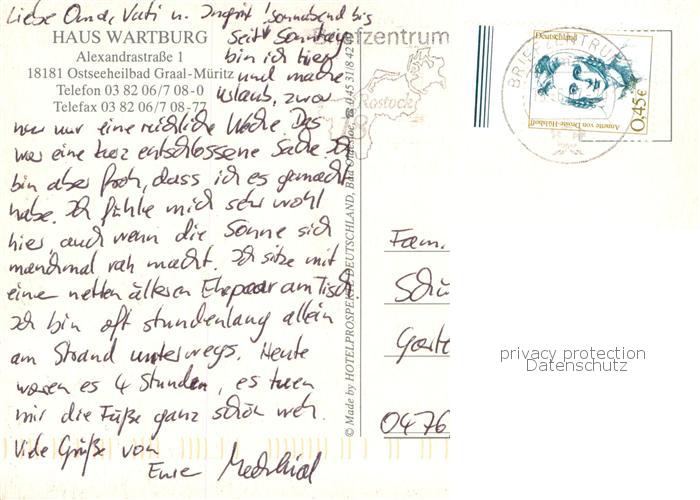73785170 alte Postkarte Graal-Mueritz Ostseebad Haus Wartburg postalisch gelaufen Erhaltung siehe scans [WerneD78] KatCode: 11110013051022