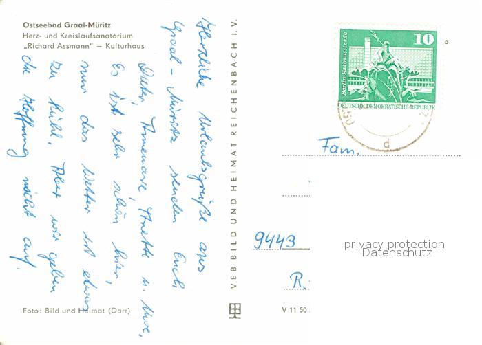 72894561 alte Postkarte Graal-Mueritz Ostseebad Herz Kreislauf Sanatorium Kulturhaus postalisch gelaufen Erhaltung siehe scans [KathaD81] KatCode: 11110013051022