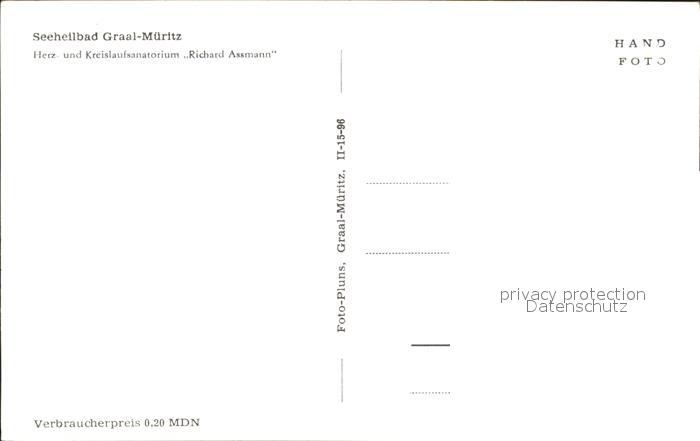 72246485 Graal-Mueritz Ostseebad Herz- und Kreislaufsanatorium Richard Assmann postalisch nicht gelaufen Erhaltung siehe scans KatCode: 11110013051022