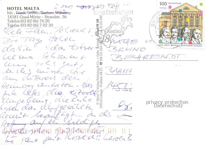 74043702 alte Postkarte Graal-Mueritz Ostseebad Hotel Malta Gastraum Kamin Terrasse Fremdenzimmer Strand postalisch gelaufen Erhaltung siehe scans [FriedD77] KatCode: 11110013051022