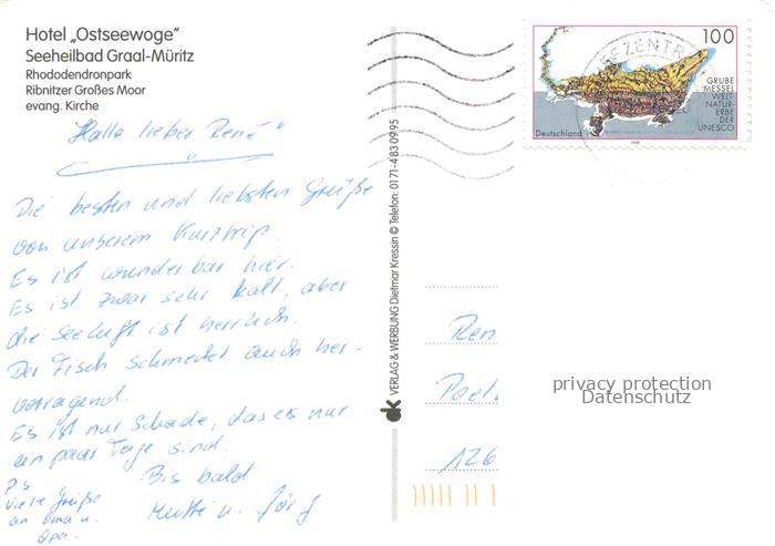 74027129 alte Postkarte Graal-Mueritz Ostseebad Hotel Ostseewoge Luftaufnahme Rhododendronpark Ribnitzer Grosses Moor Kirche postalisch gelaufen Erhaltung siehe scans [FriedD77] KatCode: 11110013051022