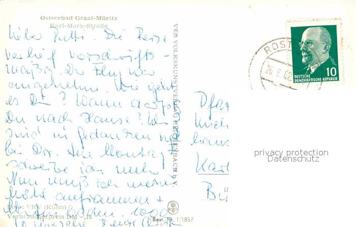 72639741 alte Postkarte Graal-Mueritz Ostseebad Karl Marx Strasse postalisch gelaufen Erhaltung siehe scans [KathaD79] KatCode: 11110013051022