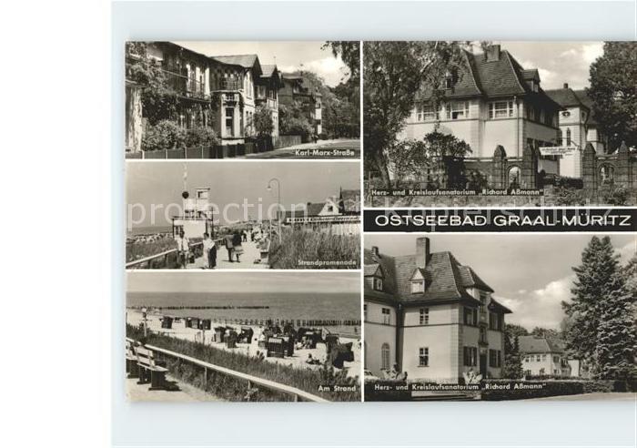 71947076 alte Postkarte Graal-Mueritz Ostseebad Karl Marx Strasse Herz Kreislaufsanatorium Richard Assmann Strand postalisch gelaufen Erhaltung siehe scans KatCode: 11110013051022