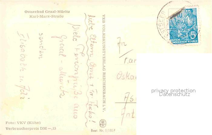 72920089 alte Postkarte Graal-Mueritz Ostseebad Karl Marx Strasse postalisch gelaufen Erhaltung siehe scans [WerneD78] KatCode: 11110013051022