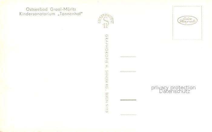 73334607 Graal-Mueritz Ostseebad Kindersanatorium Tannenhof postalisch nicht gelaufen Erhaltung siehe scans [FriedD77] KatCode: 11110013051022