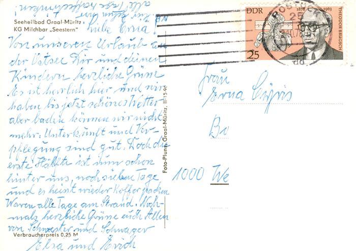 73871661 alte Postkarte Graal-Mueritz Ostseebad Milchbar Seestern postalisch gelaufen Erhaltung siehe scans [WerneD78] KatCode: 11110013051022