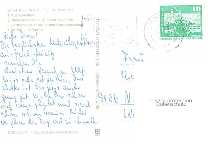 72729729 alte Postkarte Graal-Mueritz Ostseebad Musikpavillon Kliniksanatorium Gaertnerische Produktions Genossenschaft Strand postalisch gelaufen Erhaltung siehe scans [FriedD77] KatCode: 11110013051022