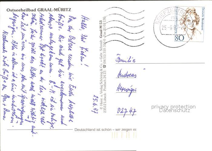 72337272 alte Postkarte Graal-Mueritz Ostseebad Reha Klinik Seebruecke Badestrand Kirche Rhododendronpark postalisch gelaufen Erhaltung siehe scans KatCode: 11110013051022