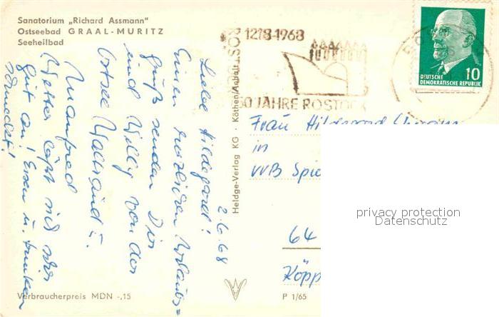 72794650 alte Postkarte Graal-Mueritz Ostseebad Sanatorium Richard Assmann postalisch gelaufen Erhaltung siehe scans [LiesaD40] KatCode: 11110013051022