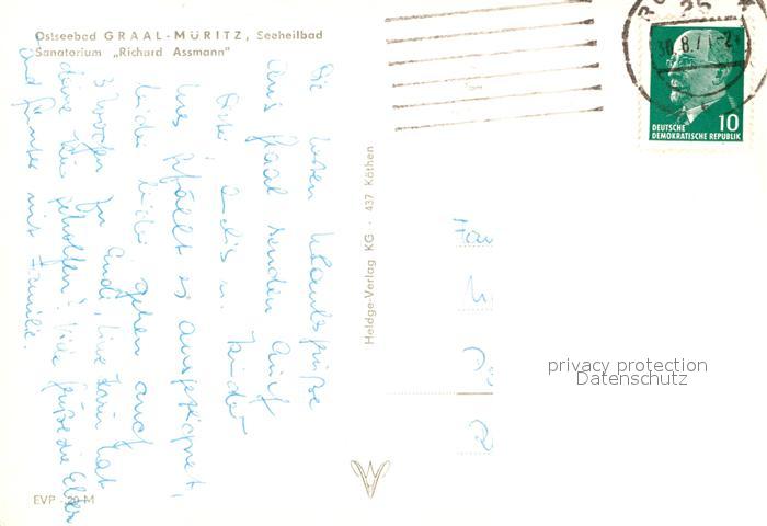72938545 alte Postkarte Graal-Mueritz Ostseebad Sanatorium Richard Assmann postalisch gelaufen Erhaltung siehe scans [NatalD47] KatCode: 11110013051022