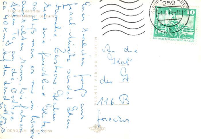 73924189 alte Postkarte Graal-Mueritz Ostseebad Strand Broiler Gaststaette An der Milchbar Seestern Promenade Inselhaus postalisch gelaufen Erhaltung siehe scans [FriedD77] KatCode: 11110013051022