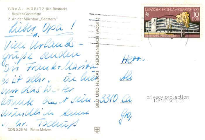 73044222 alte Postkarte Graal-Mueritz Ostseebad Strand Broiler Gaststaette Milchbar Seestern postalisch gelaufen Erhaltung siehe scans [WerneD78] KatCode: 11110013051022