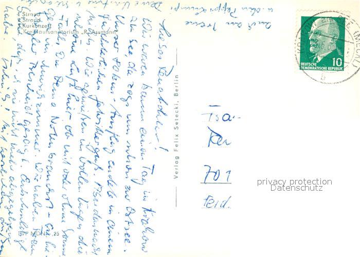 73034014 alte Postkarte Graal-Mueritz Ostseebad Strand Kurkonzert Kreislaufsanatorium Assmann postalisch gelaufen Erhaltung siehe scans [KathaD81] KatCode: 11110013051022