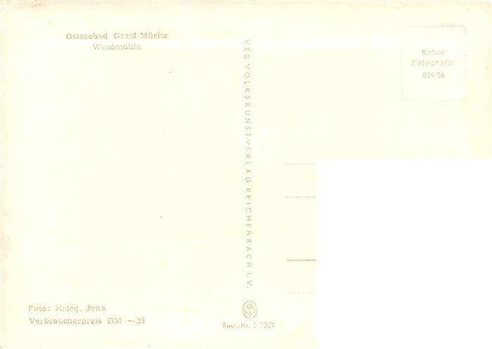 73883144 Graal-Mueritz Ostseebad Windmuehle postalisch nicht gelaufen Erhaltung siehe scans [FriedD77] KatCode: 11110013051022