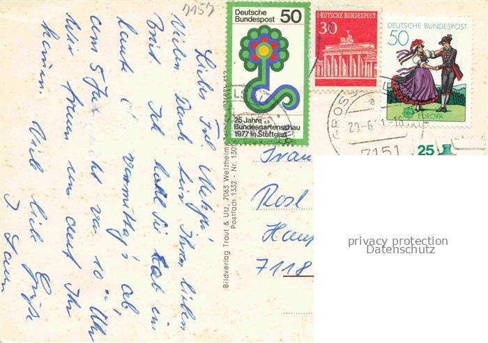 74053294 alte Postkarte Grab Grosserlach Backnang BW Ev Kirche postalisch gelaufen Erhaltung siehe scans [WerneD78] KatCode: 11110008119024