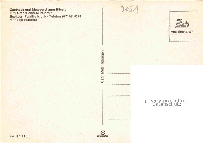 74053309 Grab Grosserlach Backnang BW Gasthaus Metzgerei zum Roessle Gastraeume postalisch nicht gelaufen Erhaltung siehe scans [WerneD78] KatCode: 11110008119024